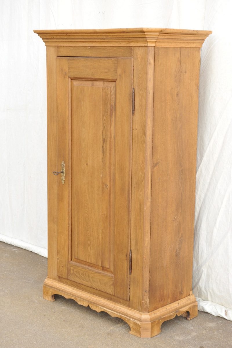 wirklich alt( um 1830/40) ist dieser Brotschrank( wegen des Einsatzes im Haushaltsbereich so genannt)aus massiver Eiche. Schlank und 3/4 tel hoch wie ein Vertiko, hat dies bäuerliche Biedermeiermöbel ein gesuchtes seltenes Format.Sehr guter Zustand.